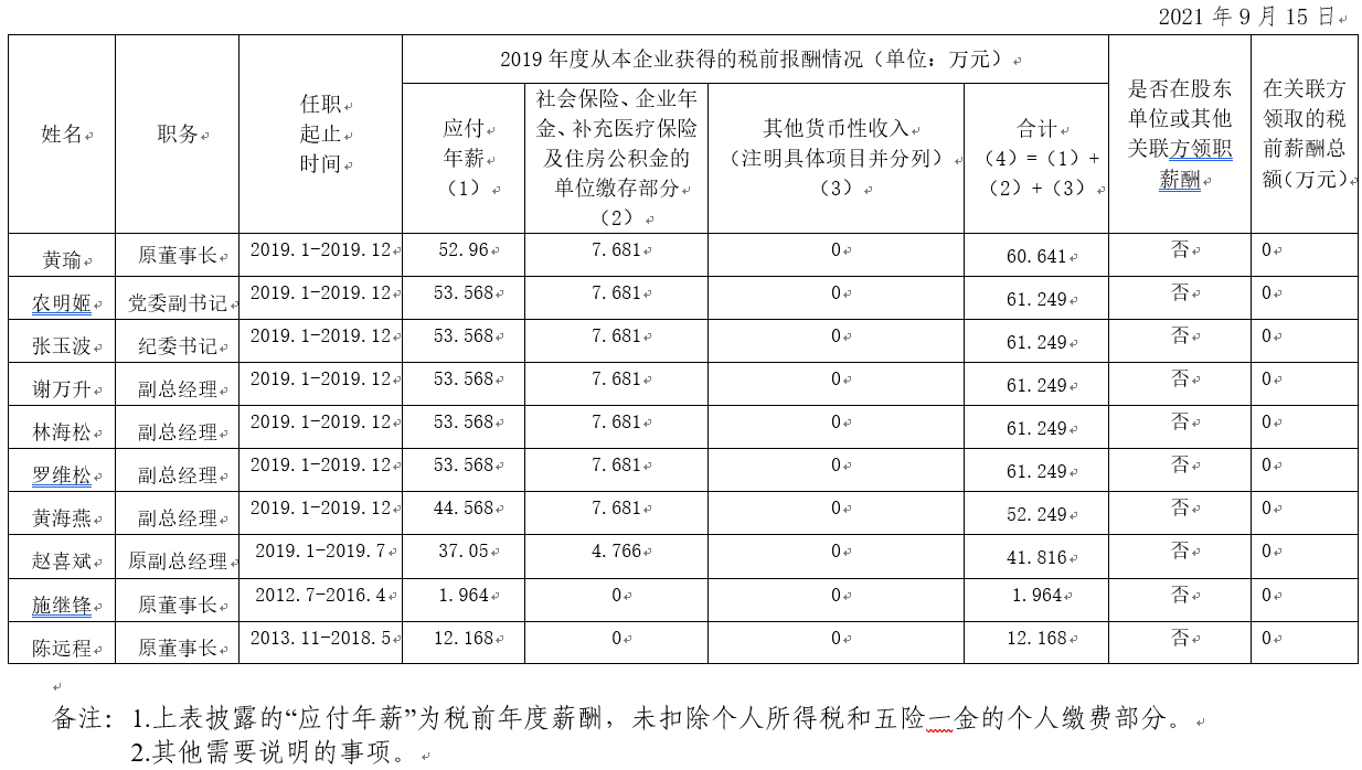 2019年度南寧交通投資集團(tuán)有限責(zé)任公司公司企業(yè)負(fù)責(zé)人薪酬信息披露