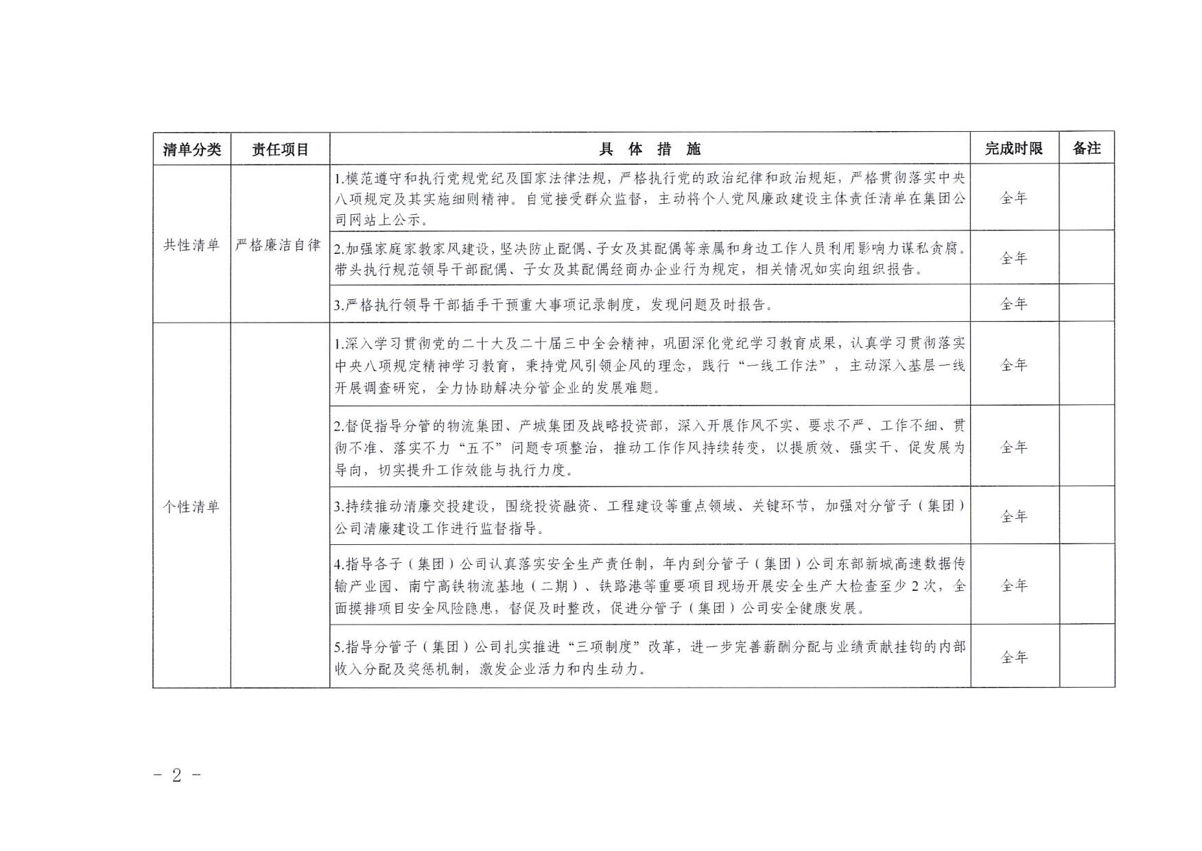 南寧交投集團領導班子其他成員2025年度黨風廉政建設“一崗雙責”清單(六)